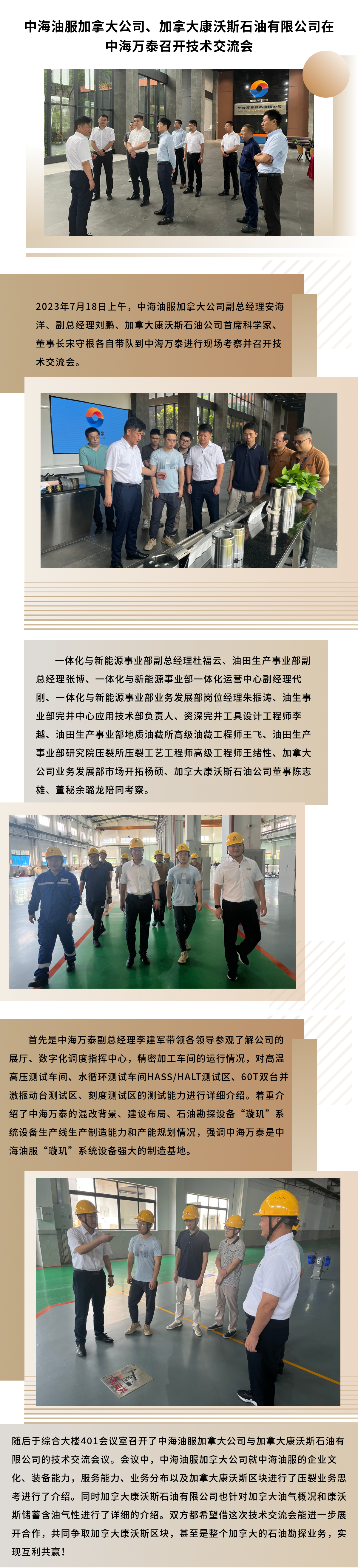 2023年7月18日 中海油服加拿大公司、加拿大康沃斯石油有限公司在中海萬泰召開技術(shù)交流會(huì)